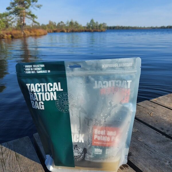 The wide and low pack makes eating from it easy and clean. The unique material allows you to heat the foodpack directly over a fire, if necessary.