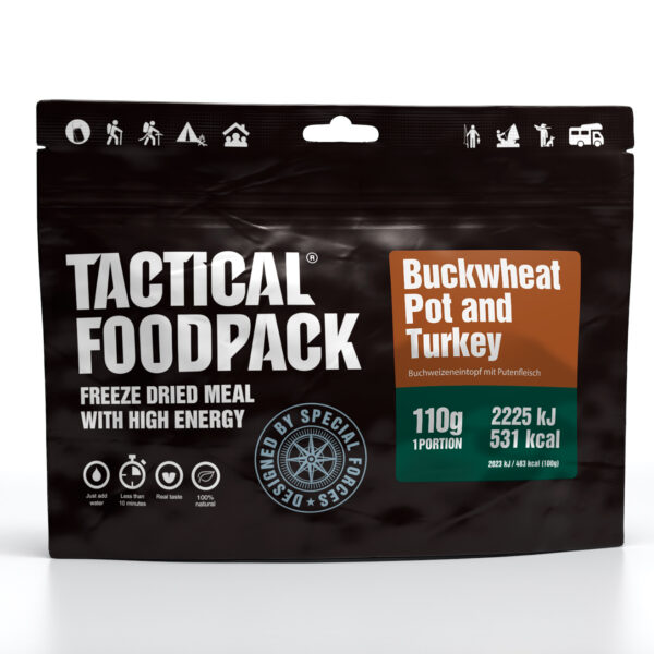 Quick and easy to prepare even under the most difficult conditions. Add hot or cold water and your meal is ready in 10 minutes. Enjoy directly from the package.