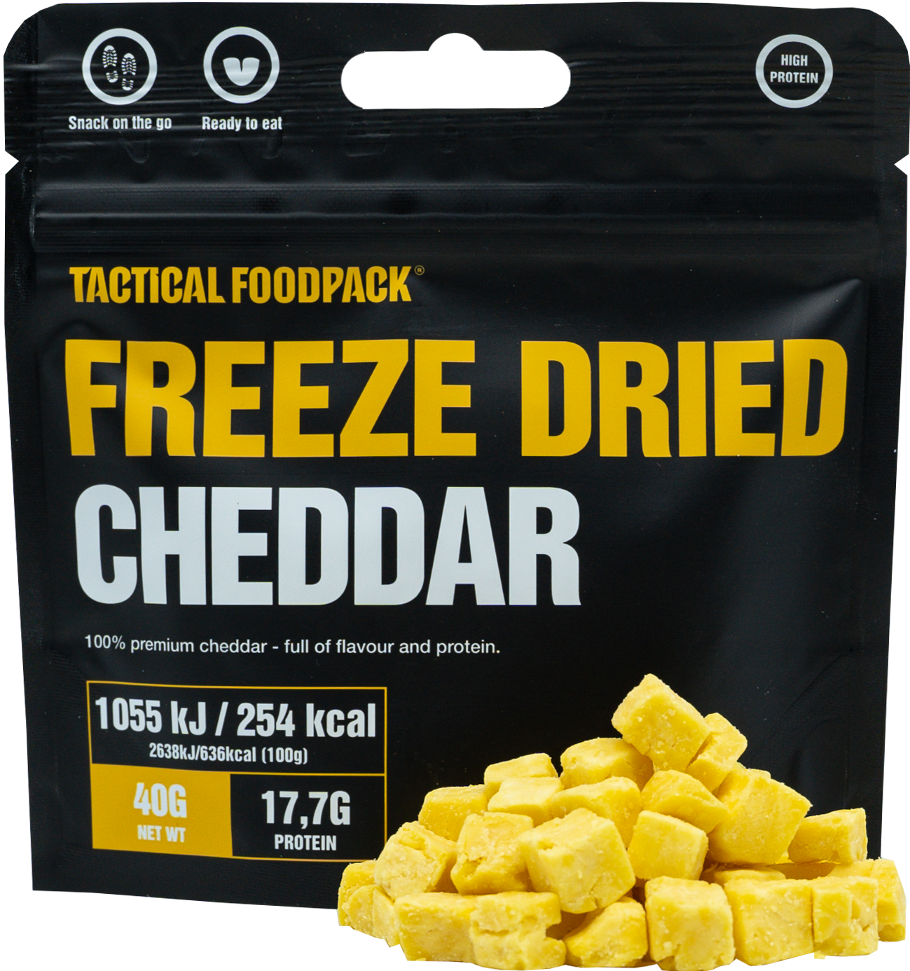 Tactical Foodpack Freeze Dried Cheese Bites will satisfy your salty craving and are a great source of calcium and protein. It’s a great change from the sweet in your backpack – full of flavour, crispy and 100% real cheese! Eat straight from the pack on the trail or enjoy by the campfire in the evening.